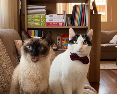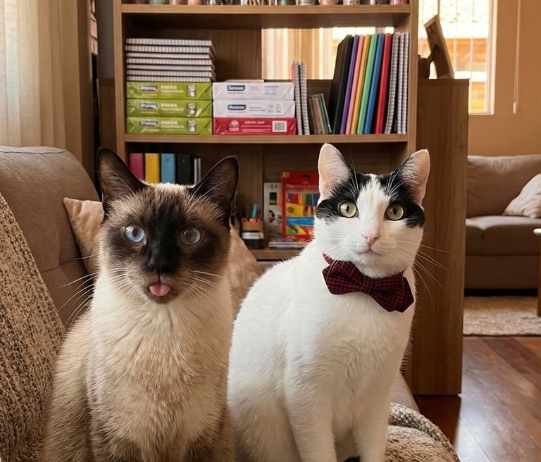 Dos gatos adorables que inspiran cada cuaderno, bolígrafo y borrador con su toque único y lleno de ternura.